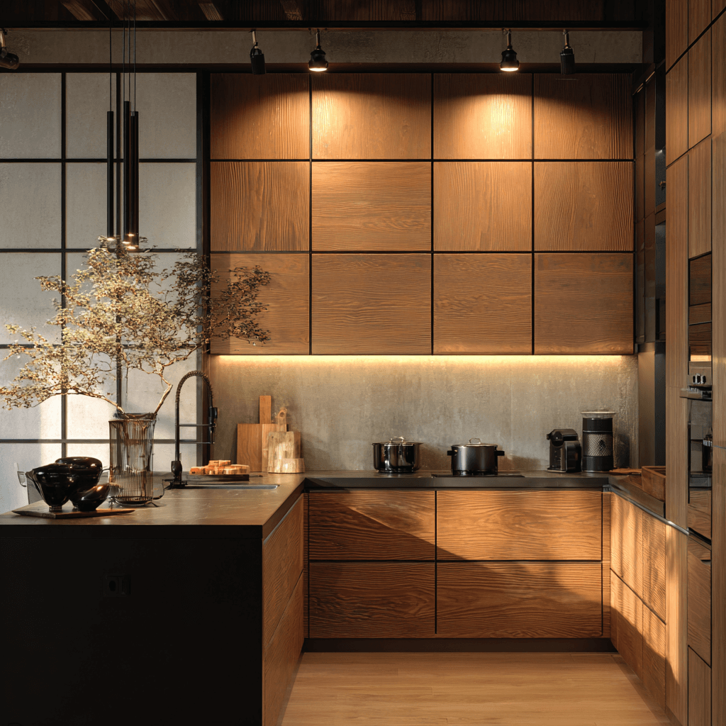 Warm matte finishes for kitchen shutters